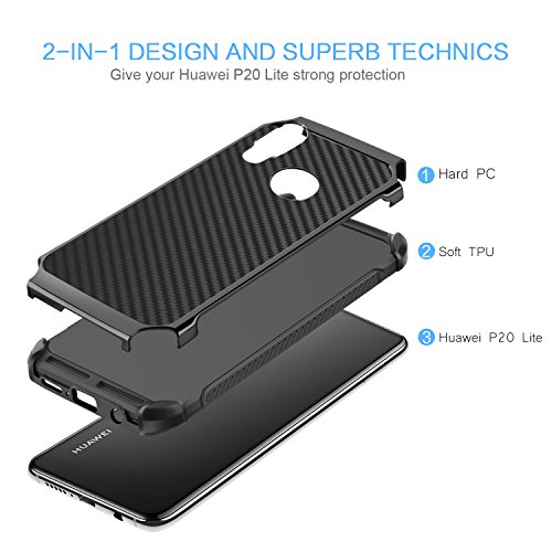 BENTOBEN Cover Huawei P20 Lite, Custodia Huawei P20 Lite, Cover Huawei P20 Lite Morbida TPU Bumper Antiurto PC Antiscivola Antigraffi Antiurto Custodia Cover per Huawei P20 Lite/Huawei Nova 3e Nero