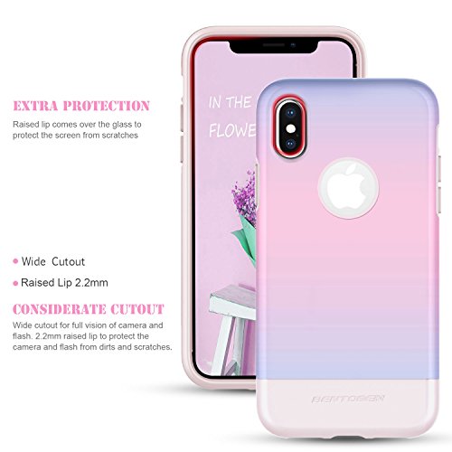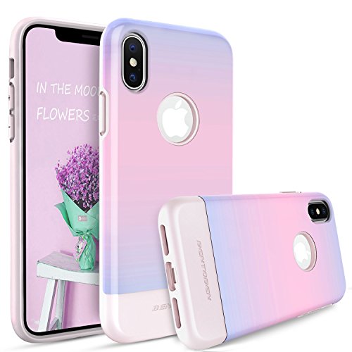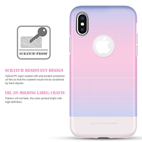 BENTOBEN Cover iPhone X, iPhone XS Custodia Antiurto, Sottile Morbida 2 in 1 TPU Antiurto PC IML Mist Hazy Figura Antigraffi Robusta Rugged Cover per Apple iPhone X/XS - Rosa Viola