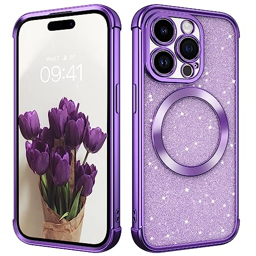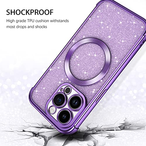 BENTOBEN Cover Magnetica per iPhone 14 Pro 6.1"[Compatibile con MagSafe], Custodia per iPhone 14 Pro Case Cover Glitter Sottile Lucida TPU Silicone, Ricarica Magnetica Wirelesse, Viola