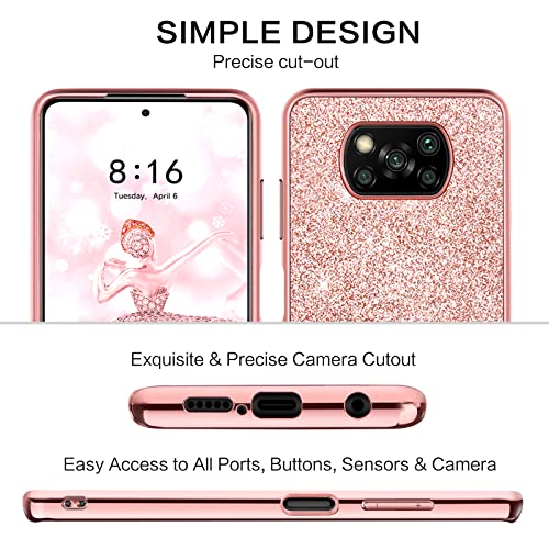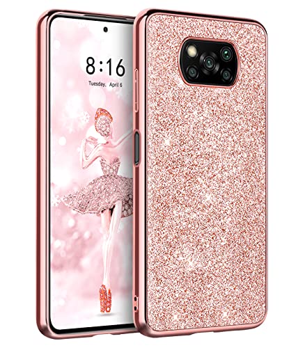 BENTOBEN Cover per Xiaomi Poco X3 NFC,Custodia Xiaomi Poco X3 NFC Cover di protezione lucida Glitter Ultra Slim TPU Silicone Flessibile Ibrido Anti-Caduta Ragazza Cover per Xiaomi Poco X3 NFC-Oro Rosa