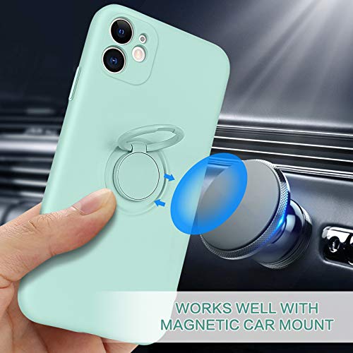 BENTOBEN - Custodia in silicone per iPhone 11, con anello di supporto, sottile, resistente ai graffi, in gomma di silicone liquido con panno in microfibra, per iPhone 11 da 6,1", colore: Verde menta