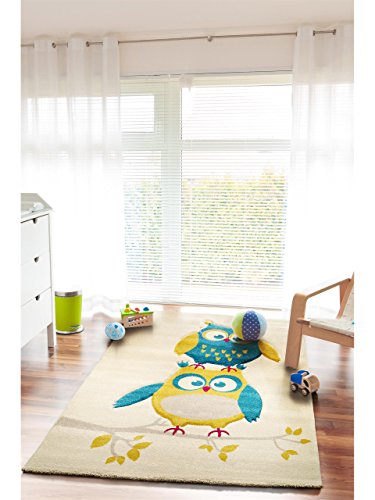 Benuta - Tappeto per bambini con motivo gufo, 120 x 170 cm, colore: Blu