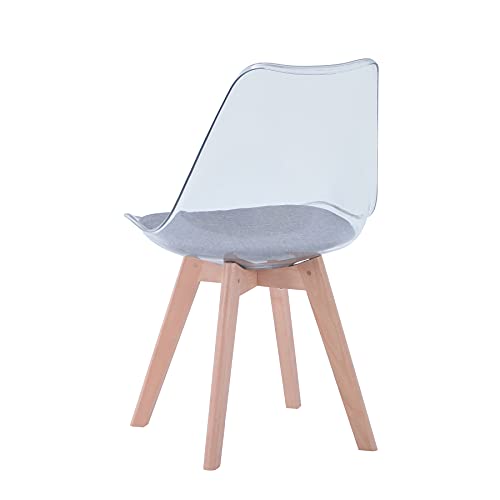 BenyLed Set di 4 sedie da pranzo in stile scandinavo design retrò sedie laterali in acrilico trasparente sedia in cristallo con cuscino di seduta in lino (Grigio, 4)