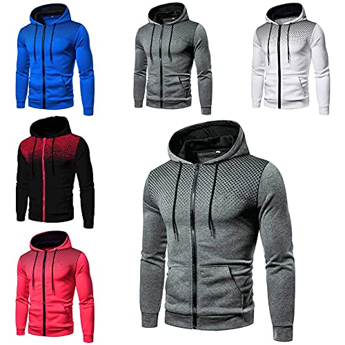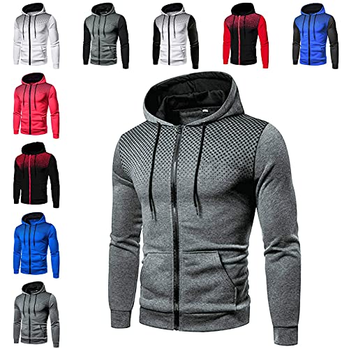 Beokeuioe Felpa con cappuccio, coulisse e chiusura lampo, da uomo, calda imbottitura, giacca invernale antivento, felpa con cappuccio e tasche a marsupio, grigio., XL