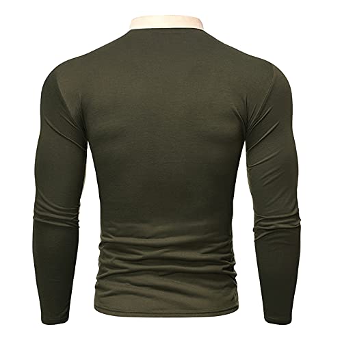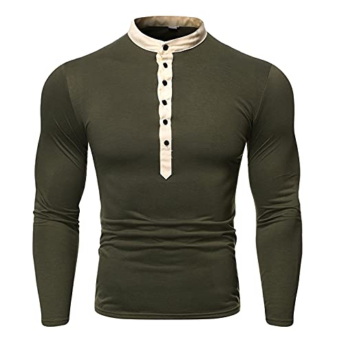 Beokeuioe Maglietta a maniche lunghe da uomo Henley con scollo Grandad basic, a maniche lunghe, con scollo a V, in tinta unita, basic, verde, XL