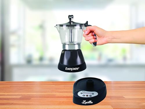 BEPER BC.041N Caffettiera Elettrica Lucilla in Alluminio, Timer Programmabile Fino a 24 Ore, Moka Elettrica 3 Tazze, Mantiene il Caffè Caldo per 30 Minuti, Electric Espresso Coffee Maker