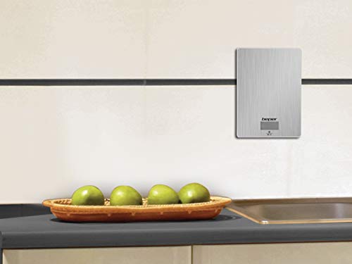 IGIENICA ED ELEGANTE: la bilancia da cucina con superficie in acciaio inossidabile permette di pesare gli alimenti direttamente sopra alla superficie, che potrà essere lavata e disinfettata per il prossimo utilizzo. L'acciaio è un materiale che non trattiene odori e sapori. Inoltre è molto bella da tenere in cucina come arredamento con la possibilità di appenderla grazie al gancio.