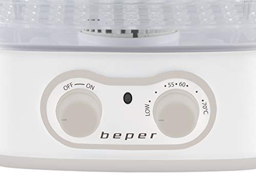 Beper Essicatore per Alimenti, Per Frutta Verdura e Erbe Aromatiche, 5 Piani Trasparenti, 35° - 70° C, 250 W Bianco/Tortora