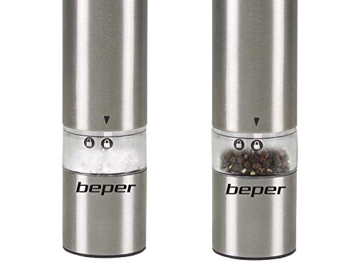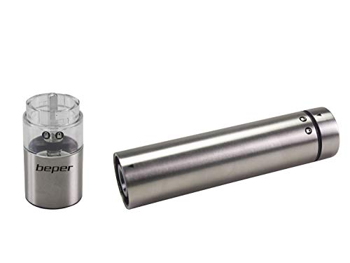BEPER P102ROB100 Macina sale e pepe, Macinaspezie in Acciaio, Lama in Ceramica, Funzionamento a pressione, Spessore macinatura regolabile, Funzionamento a batteria
