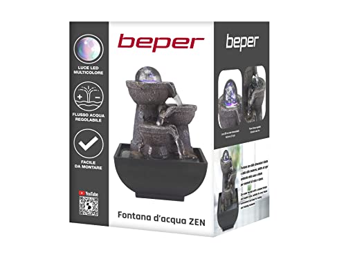 BEPER P201UTP200 Fontana Zen con Luce Led Rilassante - Fontana Zen da Interno a Cascata, Nero/Resina, Piccolo