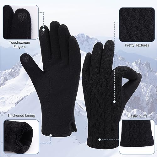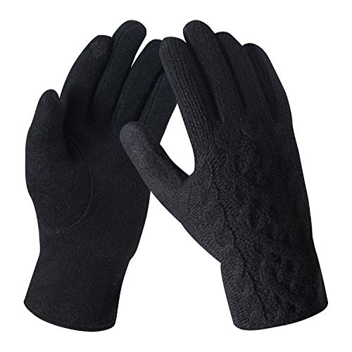 Bequemer Laden Guanti Invernali Touchscreen in Maglia Termici con Fodera in Pile di Lana per Donna e Uomo, Lavoro, Guida, Corsa, ecc, Taglia Unica, A Nero