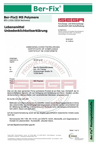 Ber-Fix BF3000 è la nuova generazione di colla di montaggio e ha una elevata aderenza iniziale. L'incollaggio di parti pesanti in punti verticali e il montaggio a soffitto è così possibile senza problemi.