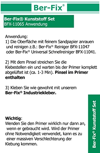 Ber-Fix Klebstoff-Set 2 zum kleben von Silikon Pe PP Teflon (PtfE) 10g Industriekleber dünnflüssig 5ml Primer