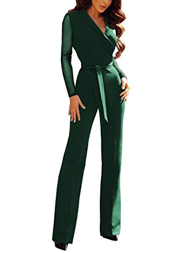 BERDITH Jumpsuit Elegante Donna Abito Cerimonia Maniche Lunghe Rompers Tuta Pantaloni Lunghi Abiti Autunno Invernali per Festa Sera Ufficio Business, Verde S