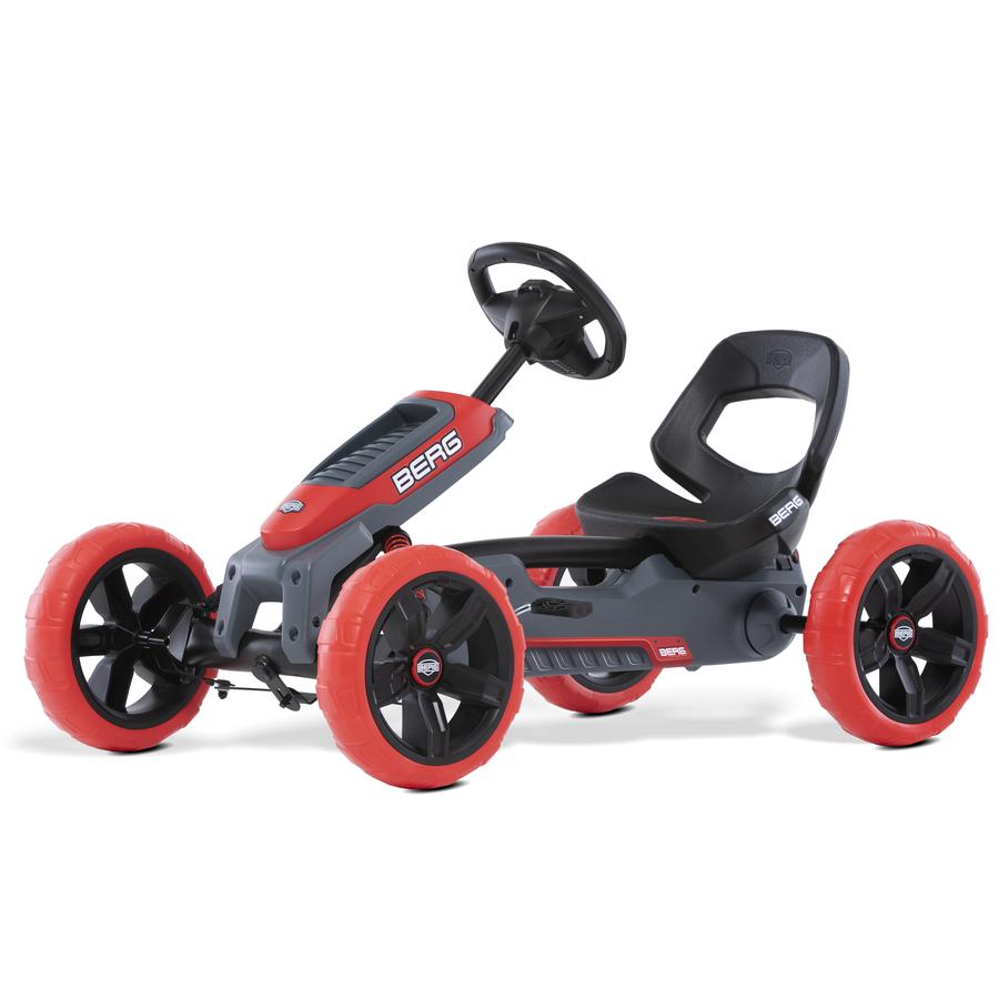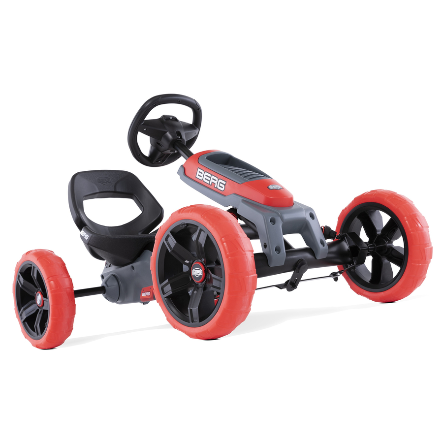 Dettagli del prodotto: Età: da 2,5 a 6 anni I solidi pneumatici EVA all-terrain da 10 di colore rosso brillante, il grande spoiler anteriore, le molle rosse e l'esclusivo volante sportivo conferiscono a questo modello un look straordinariamente cool. Il volante sportivo è dotato di serie di una vera e propria cassa acustica che produce quattro suoni diversi: Frenata, clacson, avvio del motore e accelerazione. Grazie al suo peso ridotto (9 kg), il go-kart Pedal è facile da trasportare per gli adulti, soprattutto perché il telaio è dotato di una pratica maniglia. Grazie alle sue dimensioni compatte, il go-kart Pedal è facile da riporre dopo il gioco. Con pneumatici solidi in EVA da 10, per non bucare mai più L'asse oscillante garantisce sempre una buona tenuta di strada Il comodo sedile a secchiello può essere facilmente regolato ruotando una manopola Il sedile può essere regolato in 4 posizioni Facile da trasportare grazie alla maniglia del telaio Con sistema Direct-Drive per una pedalata senza sforzo Pedal Dimensioni e peso: Dimensioni da assemblato (lunghezza x larghezza x altezza): 98 x 59 x 58 cm. Altezza minima del ciclista 85 cm max. Altezza massima del ciclista 125 cm Peso massimo del ciclista Peso del ciclista 40 kg Peso: 9 kg Avvertenze e istruzioni di sicurezza: Attenzione: è necessaria la supervisione di un adulto. Questo prodotto non deve essere utilizzato su strade pubbliche. Non effettuare curve strette quando si guida ad alta velocità. Il go-kart potrebbe ribaltarsi! Fare attenzione agli indumenti appesi, come sciarpe e lacci delle scarpe. Questi possono impigliarsi nelle parti in movimento, causando incidenti. Non guidate mai quando siete sotto l'effetto di alcol, droghe o farmaci che possono influire negativamente sui vostri tempi di reazione o sulla vostra capacità di comprensione.
