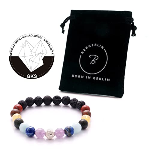 BERGERLIN Braccialetto 7 Chakra con perla d'argento 925, pietre naturali e pietre laviche da 8 mm Feel Goods