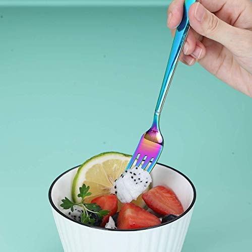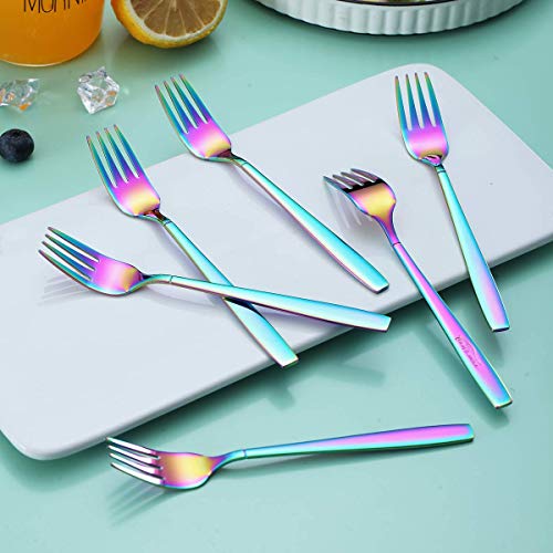 Berglander - Forchette da tè arcobaleno, in acciaio inox, forchetta da dessert con placcatura in titanio colorata, 6,5 cm, confezione da 6