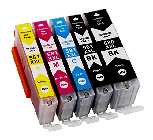 Contenuto della confezione: Confezione da 5 pezzi (1 PG nero / 1 nero / 1 ciano / 1 magenta / 1 giallo). Compatibile con le cartucce d'inchiostro Canon PGI-580 XL CLI-581 XL.