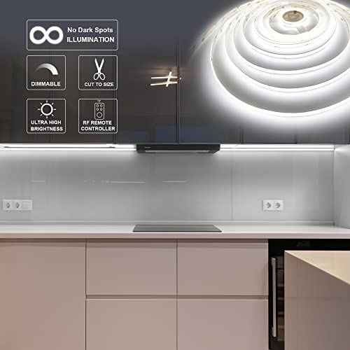 BERIXDEEP Striscia LED COB 5 Metri, Striscia LED Bianco Freddo con Alimentatore e Telecomando, CRI>90, DC24V, 480LEDs/M, Larghezza 8mm, Striscia LED Continua senza Punti Luce, 6000K
