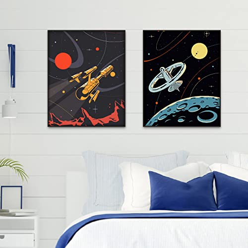 Berkin Arts Stampe da Parete Paesaggio Senza Cornice, Set di 4 Poster, Carta artistici di alta qualità Taglia: 28x35 cm, Astronauta Cosmo Nebulosa Navicella Spaziale per camera da letto Posters