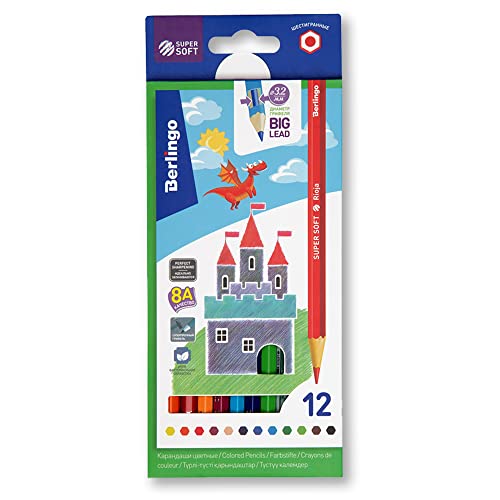 Berlingo Matite colorate, 12 pezzi, 12 colori, pre-appuntite, esagonali, legno di alta qualità, livello 8A, per bambini e adulti