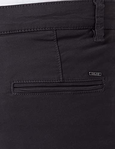 Apertura con zip e bottone, doppia tasca laterale e passanti in vita per cintura