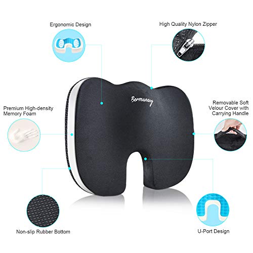 Bermunavy Cuscino del Sedile Memory Foam, Cuscino del Sedile in Gel - Cuscino Coccyx Design Ortopedico Alleviare Schiena, Sciatica e Dolore alla Spina Dorsale