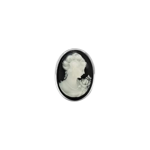 Bernardotto Argento, Spilla In Argento 925 Con Cammeo In Resina Dimensioni 30x40, Galvanica Placcatura Rodio, 15 Gr, Interamente Fatta A Mano Artigianalmente, Made In Italy
