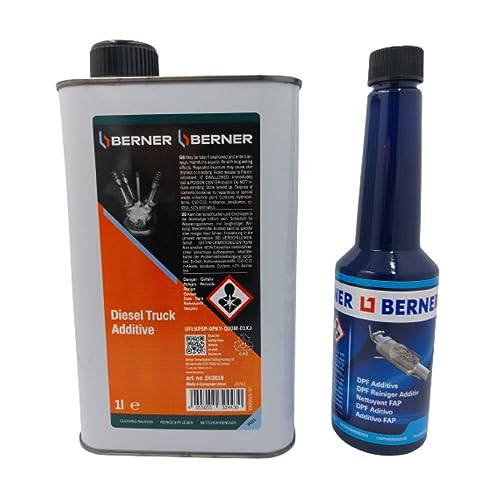 Set Berner Additivo Diesel, pulitore iniettori Motori Diesel Professionale da 1 l con Berner Additivo Fap Diesel, Dpf pulitore Filtro antiparticolato per Tutti i Tipi di Motore Diesel 150 ml
