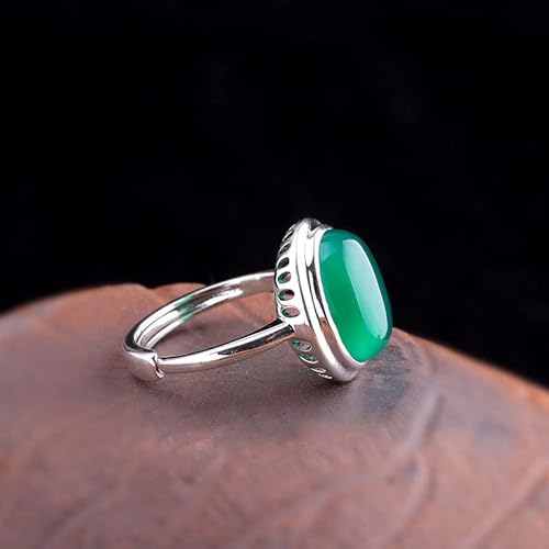 Bernice Funk Anello in Argento Sterling S925 con Pietra Intarsiata Femminile Anello Aperto Vintage in Agata Corniola MelogranoAgata verde