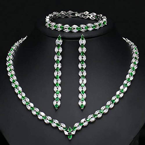 Bernice Funk Collana Orecchini Set Di Anelli Set Di Gioielli per Gioielli da Donna Set da Sposa Orecchini a Catena Collana Di Gioielli Set Di 3 Pezzi Gioielli per Banchettiverde