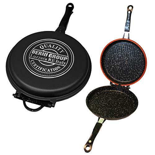 BERNIGROUP Fornetto Sanity Stone Tondo cm.28 Bistecchiera Padella Antiaderente Doppia con Rivestimento Effetto Pietra