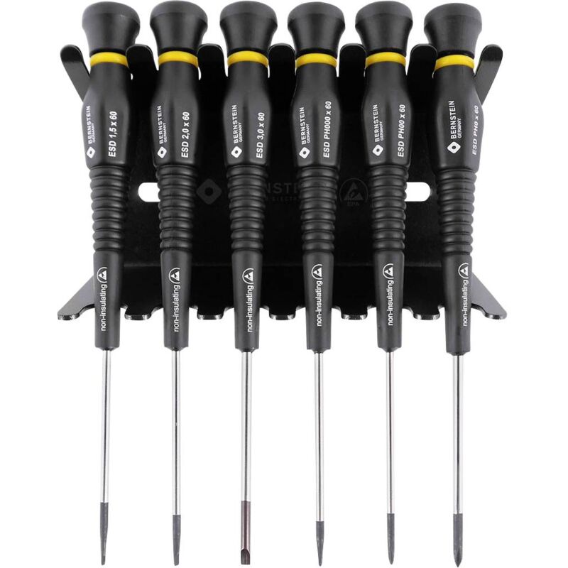 Dettagli tecnici Ambito di applicazione (cacciavite) ESD Forza Taglio, Croce Phillips Materiale Acciaio al cromo vanadio Proprietà del materiale cromato, temperato, fosfatato Tipo prodotto Kit cacciaviti Cacciavite a intaglio e a croce con supporto 6pz. In un pratico supporto da tavolo adatto per il lavoro realizzato in materiale conduttivo. Incluso nella consegna Cacciavite a intaglio con impugnatura leggera, lama in CV, con punta nera, 50 x 1,2 mm, Cacciavite a intaglio con impugnatura leggera, lama in CV, con punta nera, 60 x 2,0 mm, Cacciavite a intaglio con impugnatura leggera, lama in CV, con punta nera, 60 x 3,0 mm, Cacciavite a croce con impugnatura leggera, lama in CV, cromato, con punta nera, Gr. 000, Cacciavite a croce con impugnatura leggera, lama in CV, cromato, con punta nera, Gr. 00, Cacciavite a croce con impugnatura leggera, lama in CV, cromato, con punta nera, Gr. 0 Requisiti di sistema null