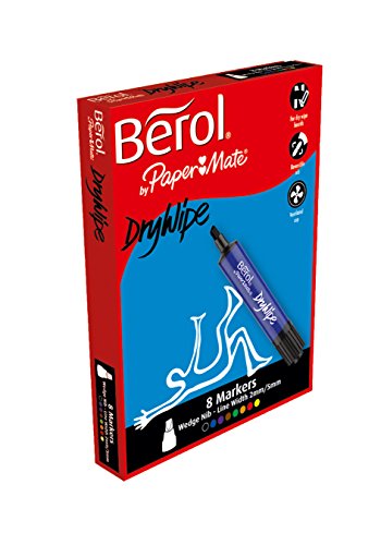 Berol - Pennarelli Cancellabili a Secco, Punta a Scalpello, colori assortiti (Confezione da 96) Confezione da 8 Assorted Colours