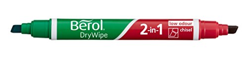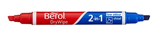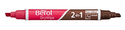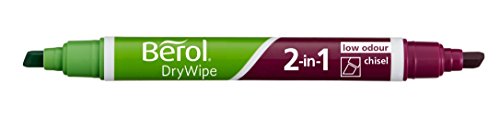 2-in-1 marcatori lavagna bianca con una punta a scalpello durevole. Due colori di punta scalpello. 1 pennarello bordo bianco. Consente di contrassegnare righe medie, ampi o bene