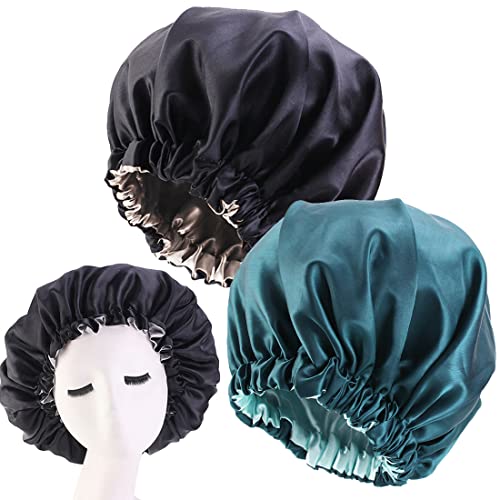 Berretti Da Notte In Raso, 2 Pezzi Di Berretti Da Notte In Seta, Berretti Per Capelli Ricci, Berretti Da Notte A Doppio Strato, Berretti Da Notte Per Donne Ragazze, Regolabili, Adatti Per Spa, Doccia