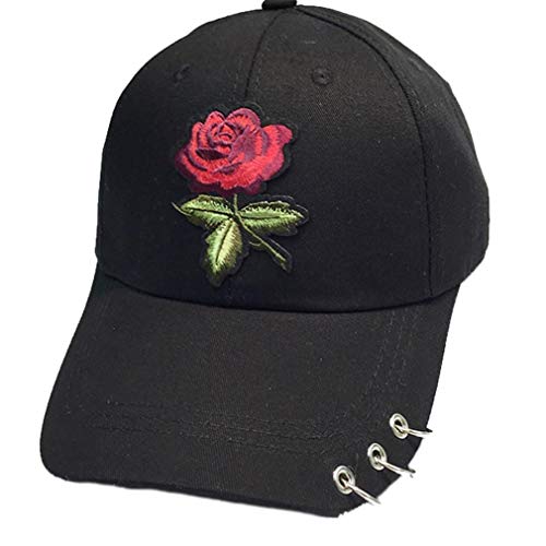 Berretto da Baseball Esterni delle Ragazze Anello di Ferro con Rosa Cappello del Fiore del Cappello del Ricamo Casuale Regolabile papà Cappello Hip Hop per Le Donne