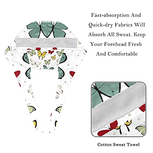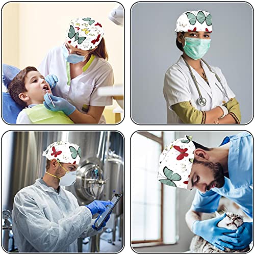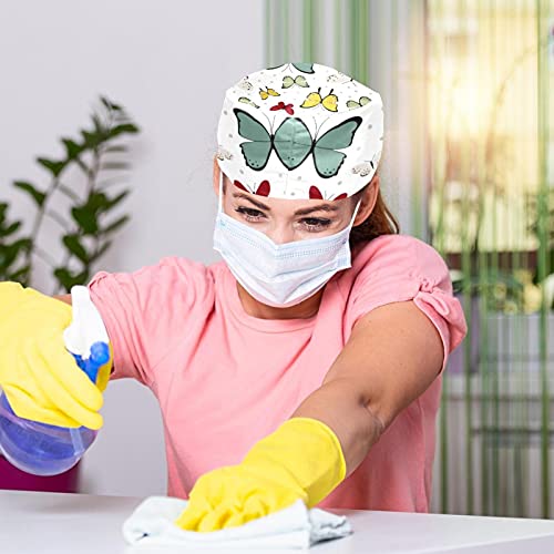 2 pz berretto da lavoro con bottoni e fascia per il sudore unisex regolabile cravatta indietro cappelli Bouffant Caps carino farfalle Scrub cappello turbante Cap, Multicolore 1, Etichettalia unica