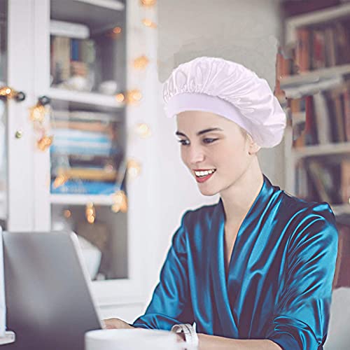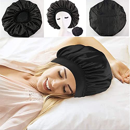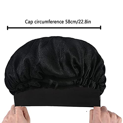 Berretto Da Notte Con Elastico In Seta Cuffia Cappello Per Dormire Berretto Notte In Raso Capelli Cappuccio In Raso Elastico Cuffia Set Acconciature Per Ragazze, Cura Dei Capelli (Nero + Bianco)