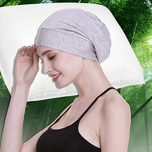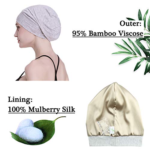 Berretto da notte foderato in raso di seta, interno 19 mm, 100% seta di gelso esterno in viscosa di bambù naturale traspirante per capelli - grigio - Taglia unica