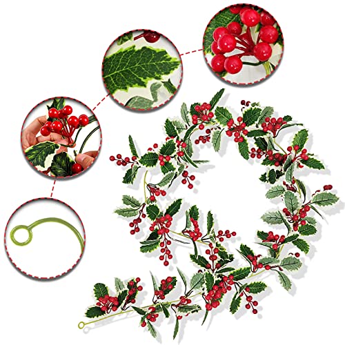 Design festoso: la nostra ghirlanda di Natale artificiale foglie di agrifoglio sembra molto naturale e realistica, la vite da appendere è con foglie verdi di agrifoglio e bacche rosse, adatta al tema dell'inverno e del Natale, ti fa sentire nella natura.