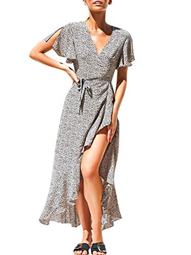 BerryGo - Maxi abito da donna con scollo a V e volant - bianco - 48