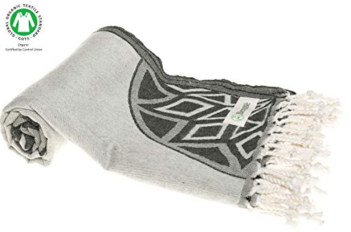 Bersuse - Asciugamano turco Ionia, certificato GOTS 100% cotone biologico, colore: Grigio/Nero