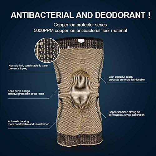 * confortevole, traspirante, Assorbimento dell' umidità tessuti: berter supporto ginocchio che abbraccia il contorno del ginocchio. Prodotto con nylon e fibra di ioni di rame, antibatterica, per essere più traspirante e antibatterico.