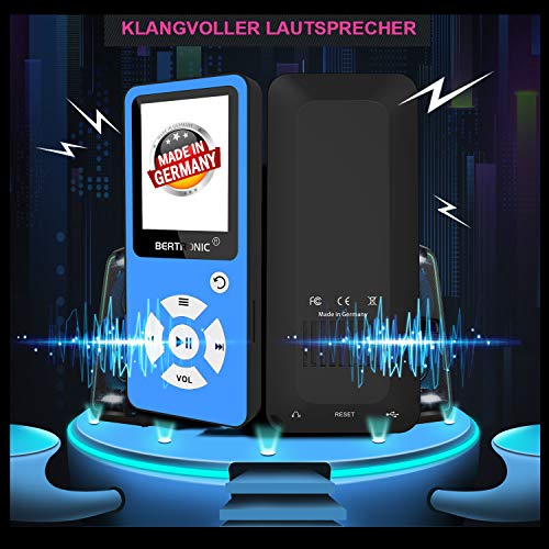 Bertronic Made in Germany BC01 Reale Lettore MP3 Fino a 100 Ore di Riproduzione Radio | Player Portatile con l'altoparlante | Lettore Audio per Lo Sport con Slot per Micro SD Card