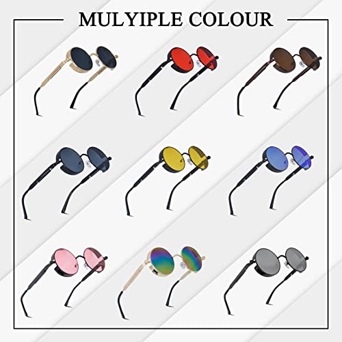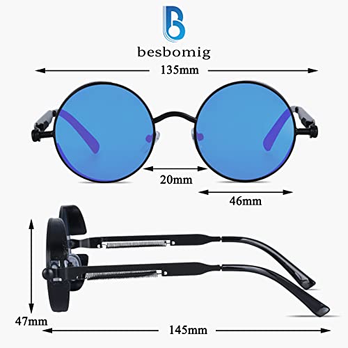 Besbomig Occhiali da Sole Rotondi Polarizzati in Metallo - Occhiali in Stile retrò Shades UV400 Sunglasses Vintage Steampunk Stile per Uomo e Donna