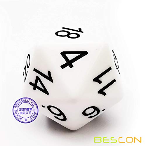 Bescon Jumbo D20 38 mm, dadi Big Size 20 Lati, colore bianco massiccio, 20 facce cubo, 3,8 cm
