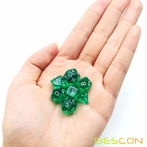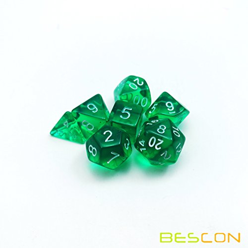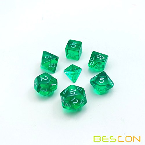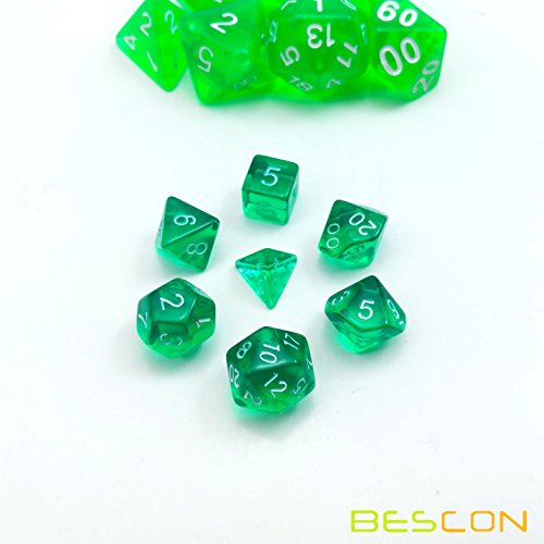 Bescon Mini Translucent Polyhedral Rpg Dice Set 10MM, Small Rpg Role Playing Game Dice Set D4-D20 in Tube, Transparent Green