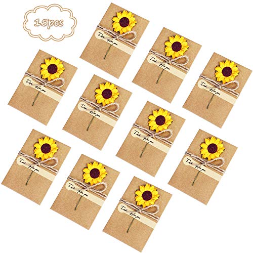 Pacchetto include: 15pz biglietti di auguri (ogni busta include 1 × busta, 1 × carta, 1 × fiore, 1 × corda d'iuta, 1 × adesivo).
