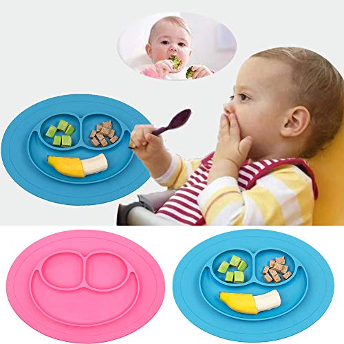 ◆Bel design Baby tovagliette per bambini, divertire il tuo bambino con adorabile design Happy tappetino diveded piatti, piatti e ciotole. la tazzina in silicone con 3 sezioni di alimenti pensate per far crescere neonati, bambini e bambini. I colori allegri e la forma carina sono amati dai bambini di tutte le età, rendono divertente il pasto.
